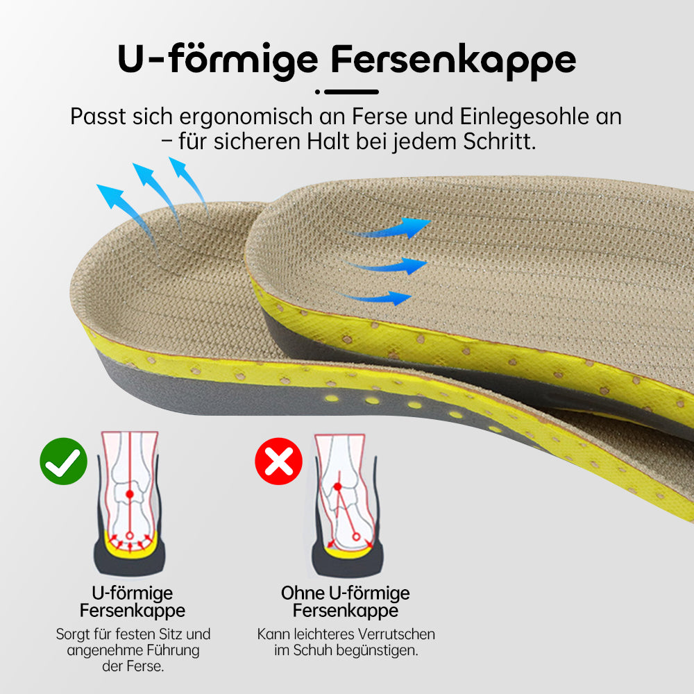 Die ergonomische Konstruktion mit stabilisierender U-förmiger Fersenkappe sorgt für einen festen Halt im Schuh. Sie unterstützt ein komfortables Tragegefühl und verbessert die Stabilität bei Bewegung im Alltag oder beim Sport.